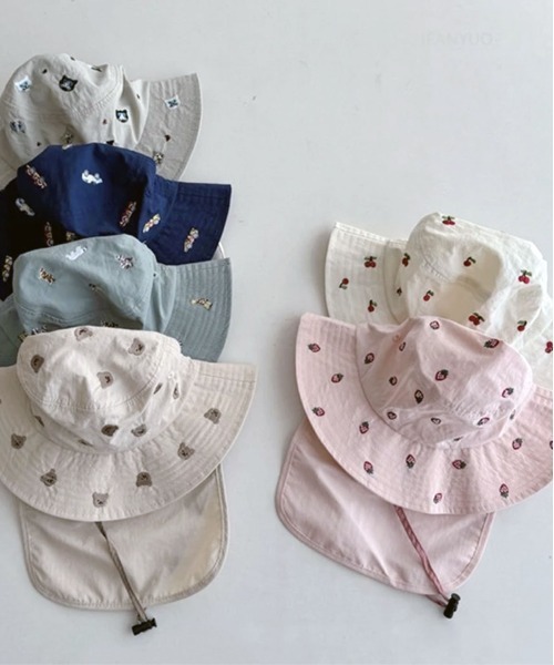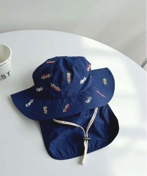 帽子 ハット 「 Bambin / ボンバン 」 刺繍 バラエティ バケットハット / 日除け付き UVカット キッズ 子供 男の子 女の子