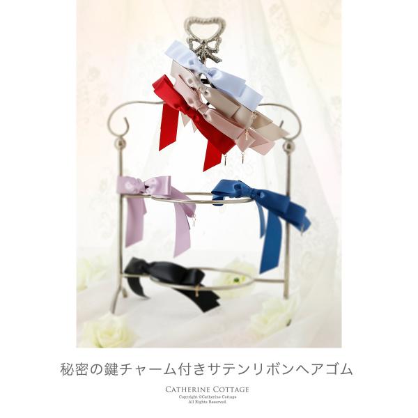 超目玉セール|ヘアアクセサリー 送料無料 秘密の鍵チャーム付きサテンリボンヘアゴム ヘアポニーヘアアレンジ [YUP4] キャサリンコテージ