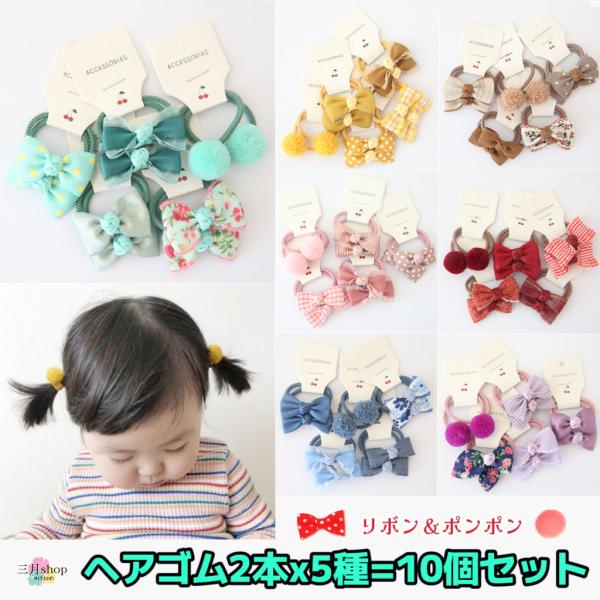 ヘアゴム 子供 リボン キッズ ヘアアクセサリー 10本セット 赤ちゃん かわいい おしゃれ 可愛い 髪留め 入園 入学 hg2108