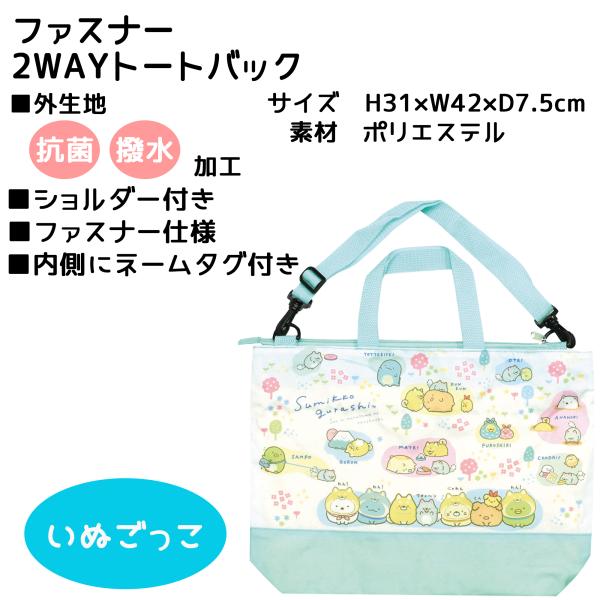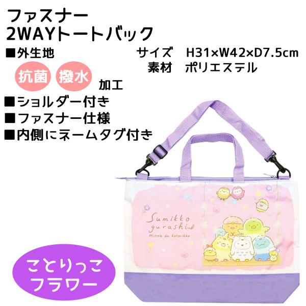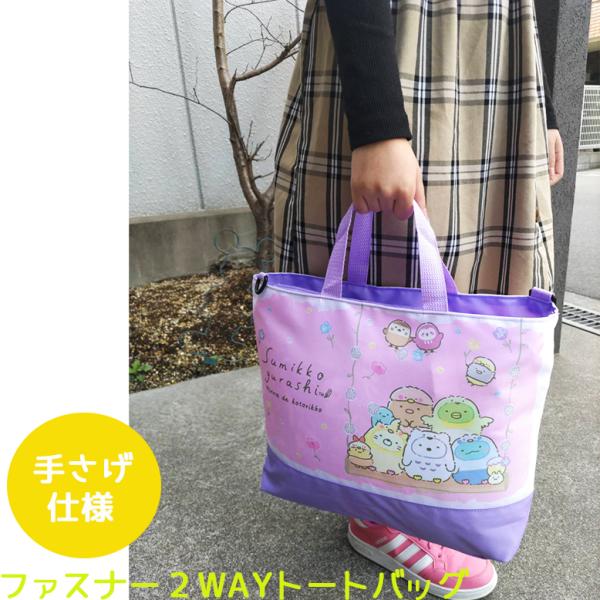 すみっコぐらし 【 選べるデザイン ・ 2WAY トートバッグ 】外生地 抗菌加工 撥水加工 新入学 お祝い プレゼント 学校 お出かけ 遊び キッズ用 ガールズ