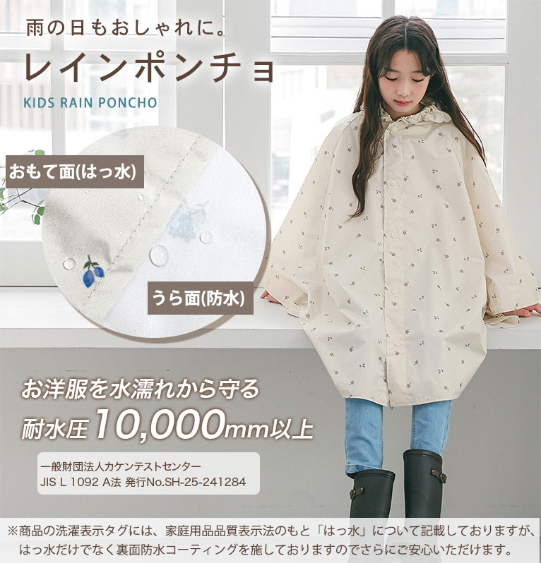 レインポンチョ キッズ 前開き 防水 撥水 男の子 女の子 かわいい おしゃれ 雨具 カッパ ポンチョ レインウェア 反射テープ付 通園 通学 入園入学 da023