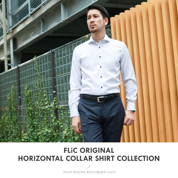 ワイシャツ メンズ 長袖 ホリゾンタル Yシャツ 形態安定 ノーマル スリム おしゃれ ワイド
