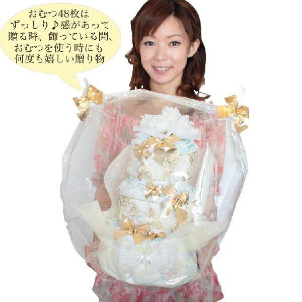 おむつケーキ おむつ枚数 48枚! 3段おむつケーキ Elegant シリーズ 送料無料
