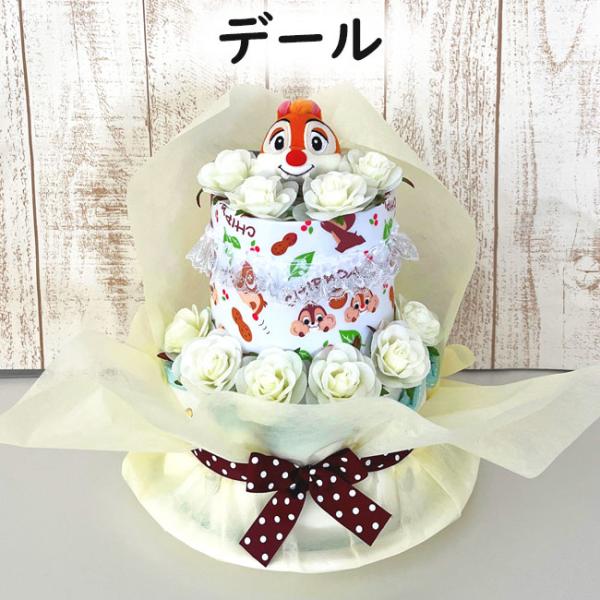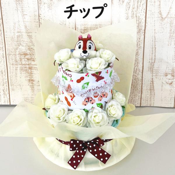 ディズニー チップとデール 2段おむつケーキ チップ デール りす 出産祝い 100日祝い 男の子 女の子 お花