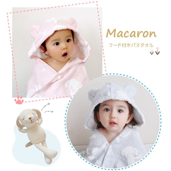 出産祝い 名入れ ギフト マカロン 女の子 男の子 名前刺繍 今治タオル おしゃれ ベビー ベビーポンチョ 日本製 ベビーバスローブ ガーゼ