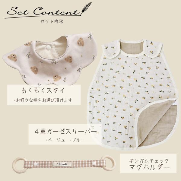 ギフト3点セット ガーゼスリーパー 柄が選べる もくもくスタイ ビブ ギンガムチェック マグホルダー テディベア 男の子 女の子 出産祝い 名入れ 送料無料 双子