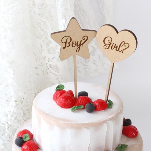 木製 ケーキトッパー ジェンダーリビール【B】| マタニティ 性別発表 妊婦 出産準備 インスタ 妊娠 報告 サプライズ ファミリー フォト 写真 家族 シンプル