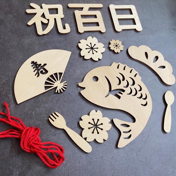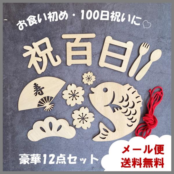 100日祝い 祝百日 木製 レターバナー 12点セット お食い初め 飾り グッズ