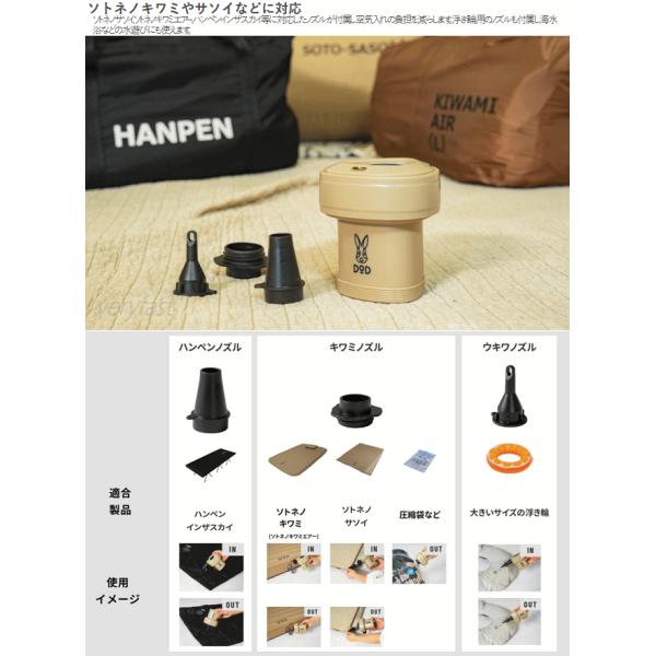 DOD エアポンプ エアーポンプ 電動ポンプ 乾電池不要 バッテリー内蔵式 コンパクト 空気入れ プール エアマット 浮き輪 わがやのエアポンプ DP1-092-TN タン
