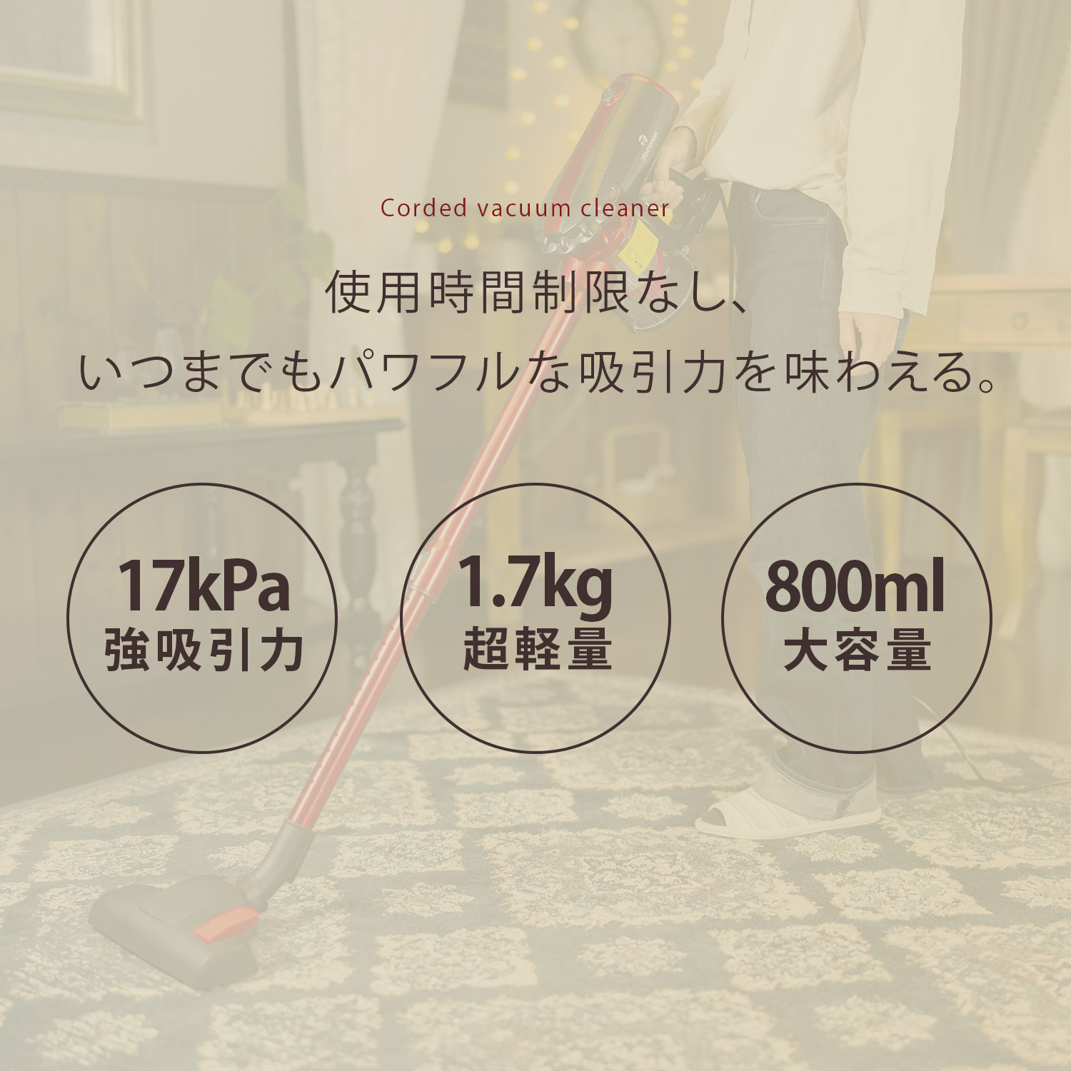 \2026春の準備Sale★6980円→5980円/掃除機 17000pa 450W 超強吸引力掃除機 コード式 サイクロン クリーナー サイクロン掃除機 コンパクト お手入れ簡単 D20