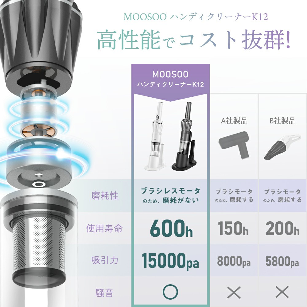 \2026春の新生活Sale★8,980円→7,980円!/ハンディクリーナー 強力吸引 12000pa ハンディ 掃除機 コードレス 車 軽量 静音 コンパクト 2Way パワフル K12