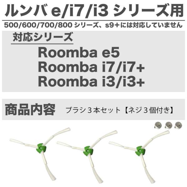 ルンバ 互換 ブラシ e7 i7 i7+ i3 i3+ 3本セット シリーズ用 交換 ネジ付 エッジクリーニングブラシ スペアブラシ