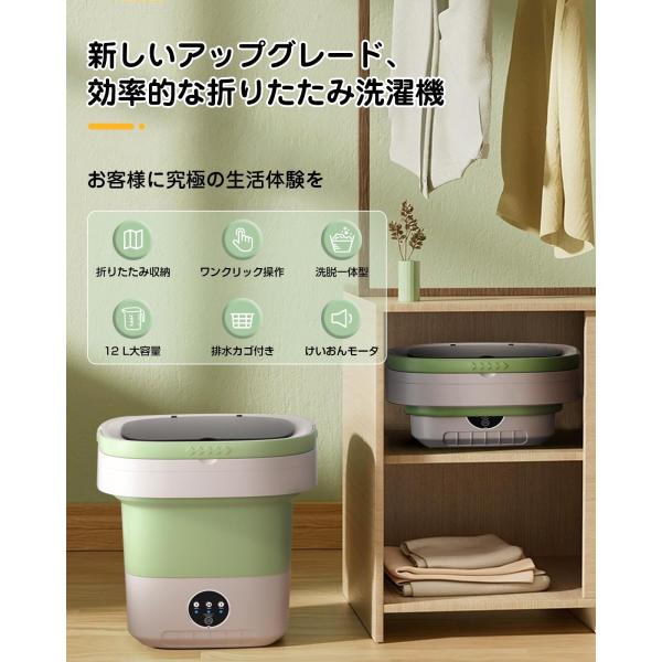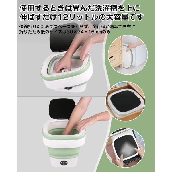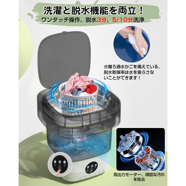 小型洗濯機 折りたたみ 12L大容量 バケツ式 脱水 洗浄 青色殺菌 静音モータ 一人暮らし 小型脱水機 ワンタッチ操作 脱水機能付き アパート/寮/旅行/キャンプ