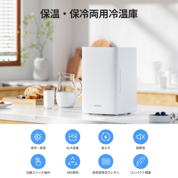 EENOUR 冷温庫 6L 小型 冷蔵庫 ポータブル 保冷温庫 保冷 保温 AC DC 2電源式 車載 部屋用 温冷庫 6リットル ミニ冷蔵庫 一人暮らし