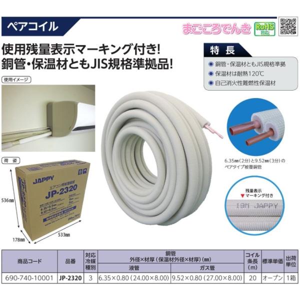 法人様限定販売 エアコン用 被覆銅管 JP-2320 JAPPY ペアコイル 2分3分 20m 配管