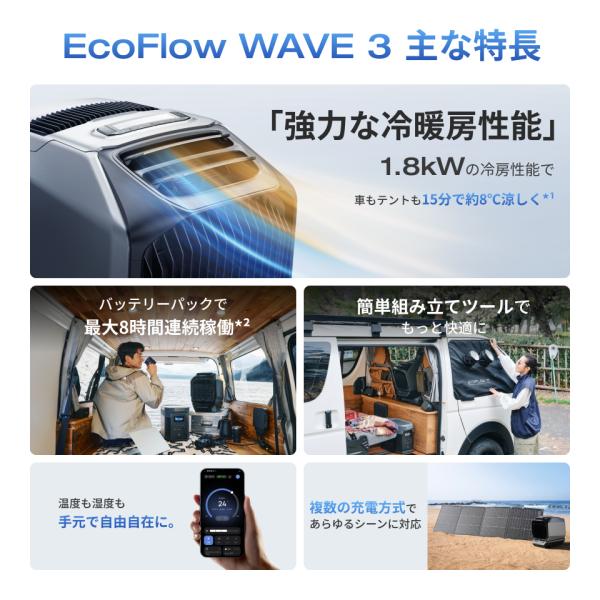 夏&冬両用 EcoFlow WAVE 3 ポータブルエアコン 冷風機 冷暖房機能付 エアコン キャンプ 車中泊 家庭用 暑さ対策 アウトドア エコフロー