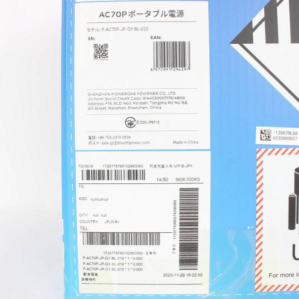 ボーナスストア+5%【新品未開封】BLUETTI AC70P ポータブル電源 864Wh/1000W 蓄電池 非常用電源 ブルーティ 本体