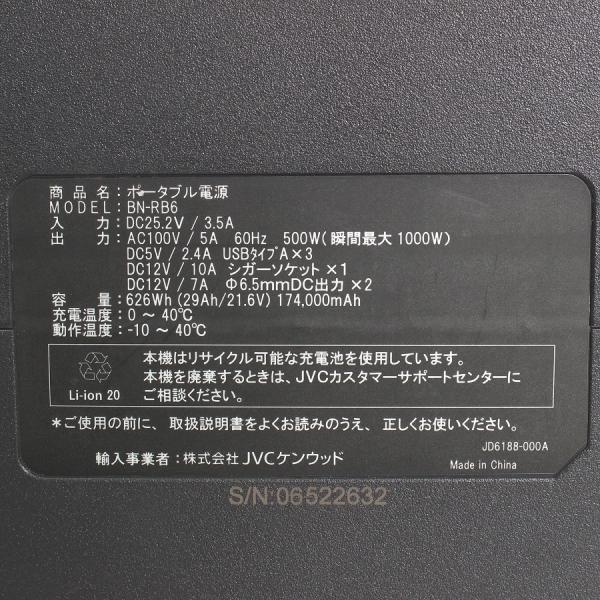 ボーナスストア+5%【美品】JVC BN-RB6-C 174,000mAh/626Wh 充電池容量 ポータブル電源 蓄電池 非常用電源 ケンウッド Jackery ジャクリ 本体