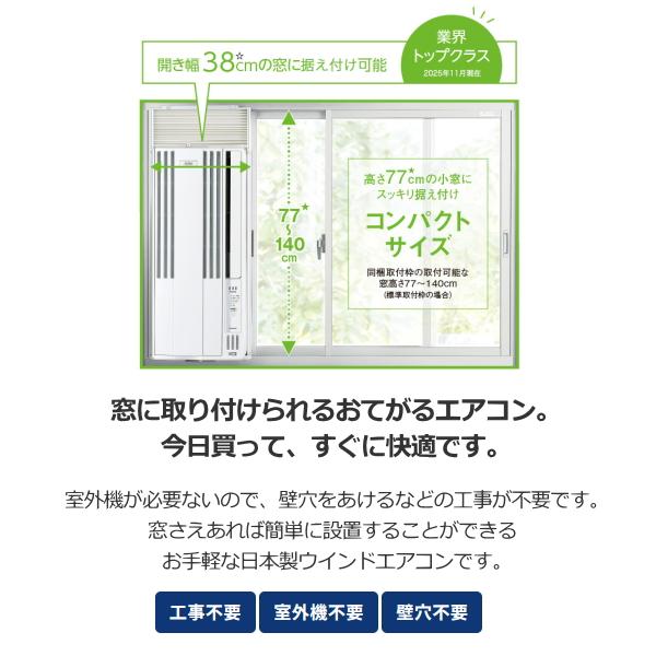 【2026年モデル 4月10日入荷】コロナ 窓用エアコン 冷房専用 4〜7畳 ウインドエアコン 静音 リモコン付き コンパクト CORONA ReLaLa リララ CW-1626R