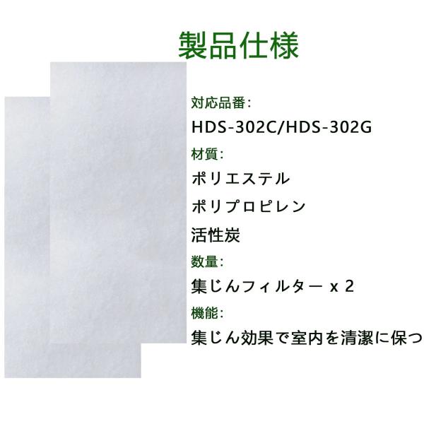 HDS-302C HDS-302G用 集塵フィルター hds-302c HDS302C フィルター HDS302G 脱臭機 交換用 2枚り(9450889012)