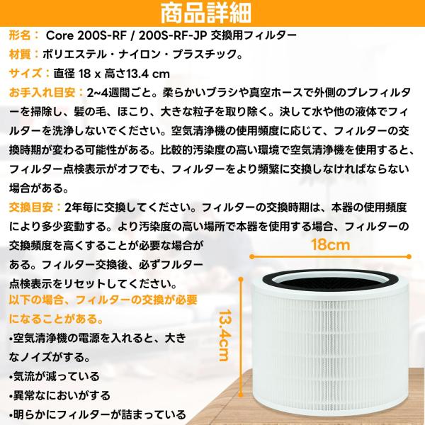 Levoit互換用フィルター Core 200S フィルター 空気清浄機 Core 200S-RF 200S-RF-JP 脱臭フィルター 集じんフィルター HEPAフィルター 1個入り