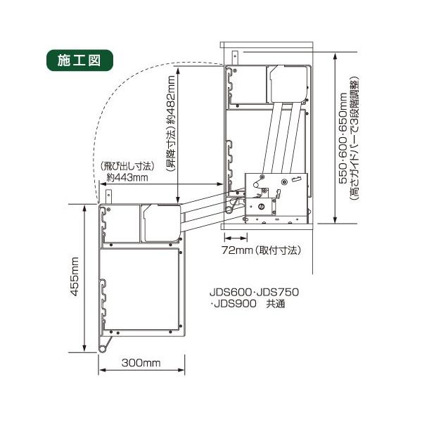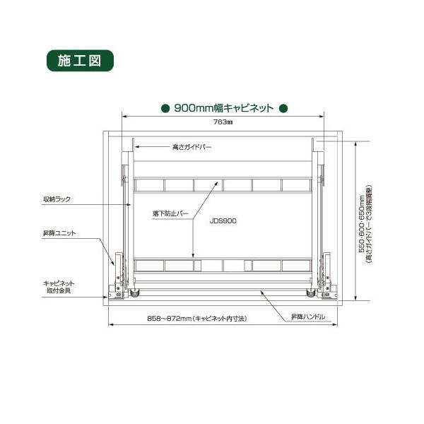 メーカー直送 ダウンキャビネット 900mmキャビネット用 昇降式キャビネット 吊り戸棚用 [JDS900] オークス 収納棚 キッチン棚