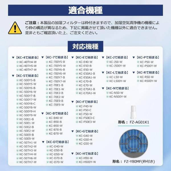 FZ-Y80MF加湿フィルターKC-G50 KC-E50 KC-F50 KC-J50 互換品 KC-50TH4 空気清浄機フィルター KC-G40 KC-H50 加湿空気清浄機用 FZ-Y80MF 枠付き 1枚入り