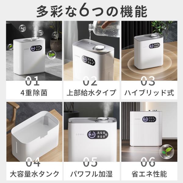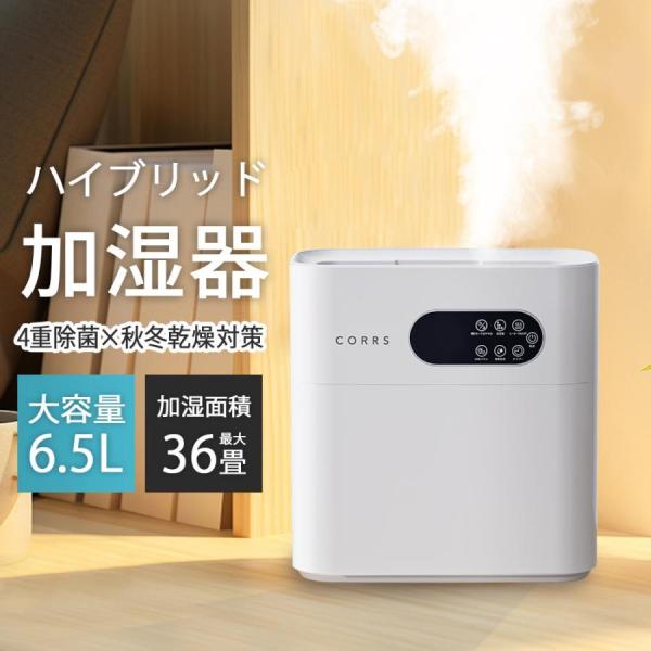 ハイブリッド式加湿器 大容量6.5L 高温除菌 UV除菌 4重除菌 36畳対応 上から給水 6段階モード ヒーター機能付き 加湿器 タイマー機能 空気清浄 秋冬乾燥対策