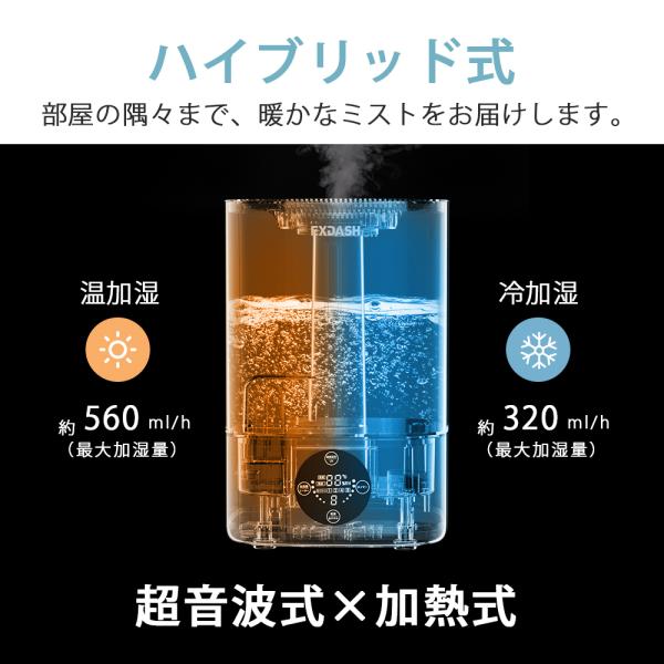 加湿器 ハイブリッド加湿器 大容量 5L 超音波式 加熱式 加湿器 おしゃれ 4重除菌 6段階調節 最大対応面積35畳 リモコン付き マイナスイオン 上から給水 省エネ