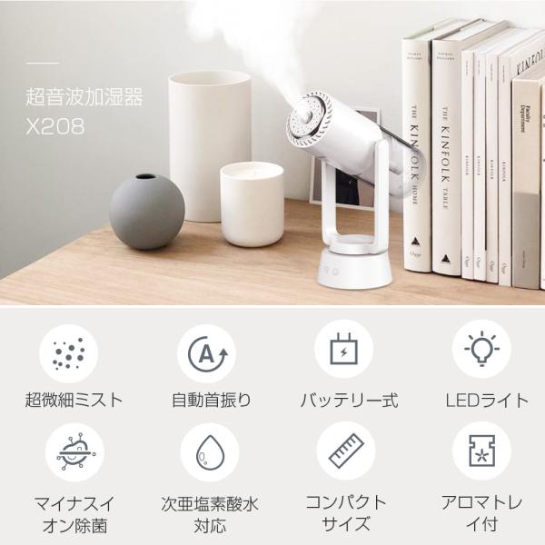 加湿器 X208 卓上 アロマ 除菌 自動首振り 超音波 オフィス 卓上加湿器 アロマ除菌 コードレス 長時間連続加湿 ミニ加湿器 持ち運び 空焚き防止 空気清浄機