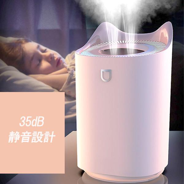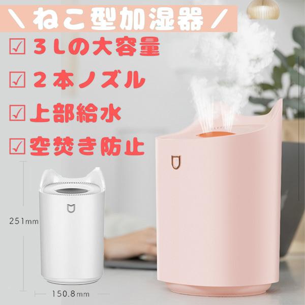 決算セール 3L 大容量 超音波 加湿器 卓上加湿器 リビング加湿器 USB給電 ねこ 猫の耳 上部給水 自動停止機能 静音 オフィス 会社 お店用 乾燥対策 花粉症対策