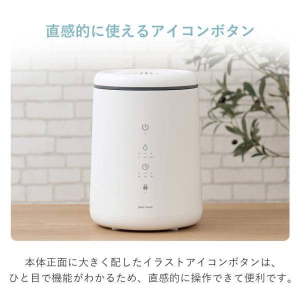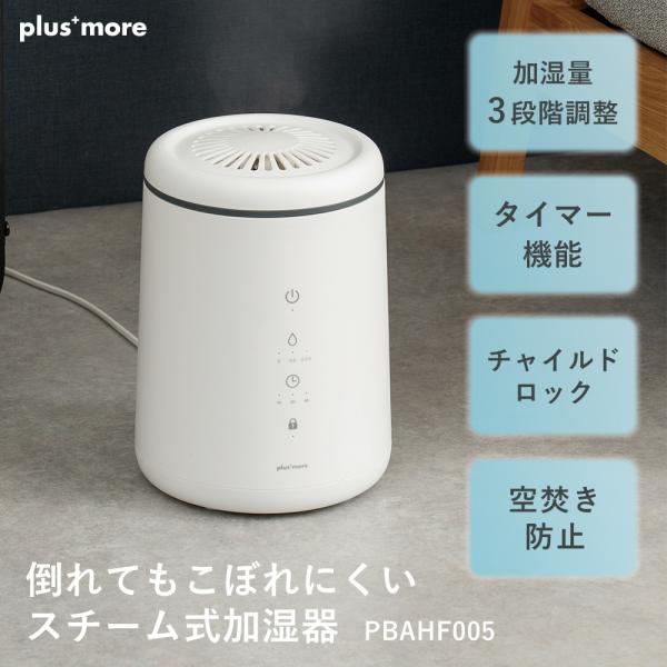 4/15はP+9%! 倒れてもこぼれにくい スチーム式 加湿器 PBAHF005 大容量 タイマー 加熱式 上部給水 お手入れ簡単 チャイルドロック 空焚き防止 plus more