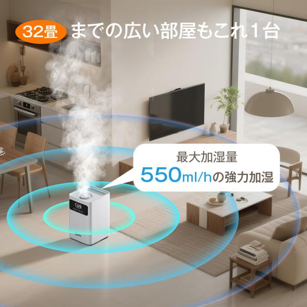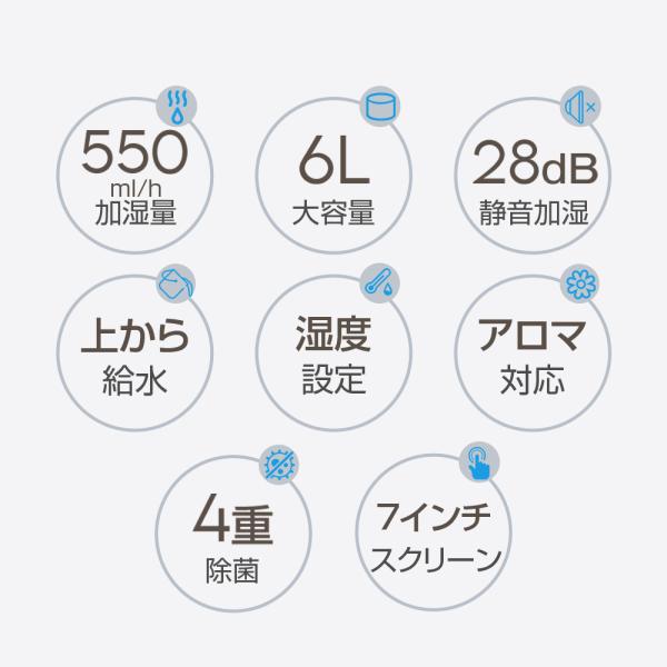 【空気清浄機能】ハイブリッド加湿器 AI加湿自動調節 大容量6L タイマー付き 新登場7.0インチ大画面 加熱式&超音波式 4重除菌 100℃高温除菌 アロマ対応