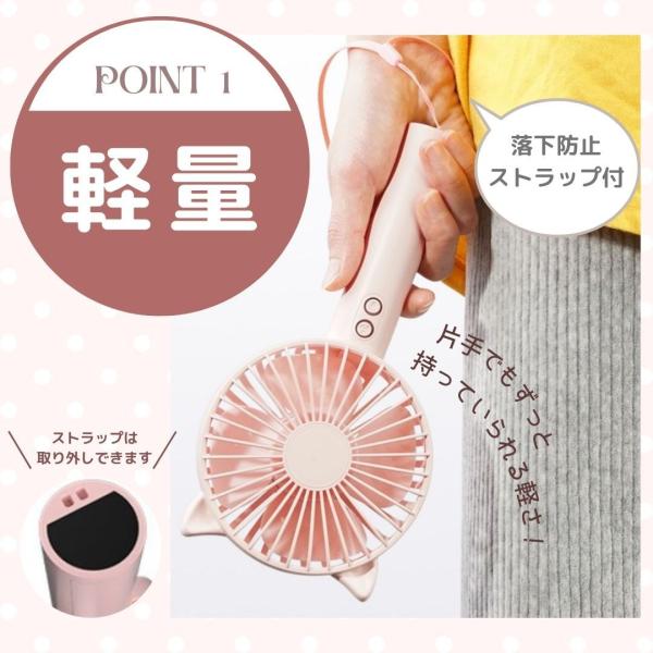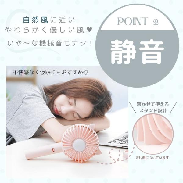 ハンディファン ハンディ扇風機 猫 静音 ハンディ 強風 充電式 強力 猫耳 ねこ 卓上 スタンド スマホ 子供 ストラップ おしゃれ 置き型 軽い