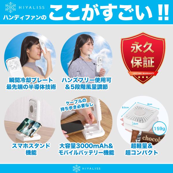 ハンディファン 冷却プレート 冷却 首掛け 扇風機 小型 静音 2026 モバイルバッテリー