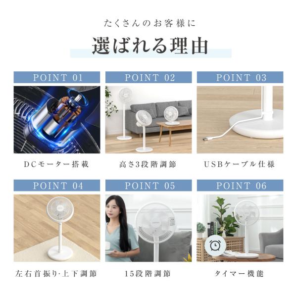 扇風機 サーキュレーター DCモーター 1台3役 省エネ 高さ調節可能 15段階風量調節 左右首振り 静音 パワフル送風 リモコン付き タイマー機能 usb式爆買