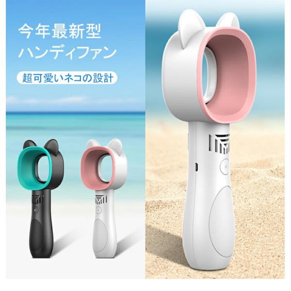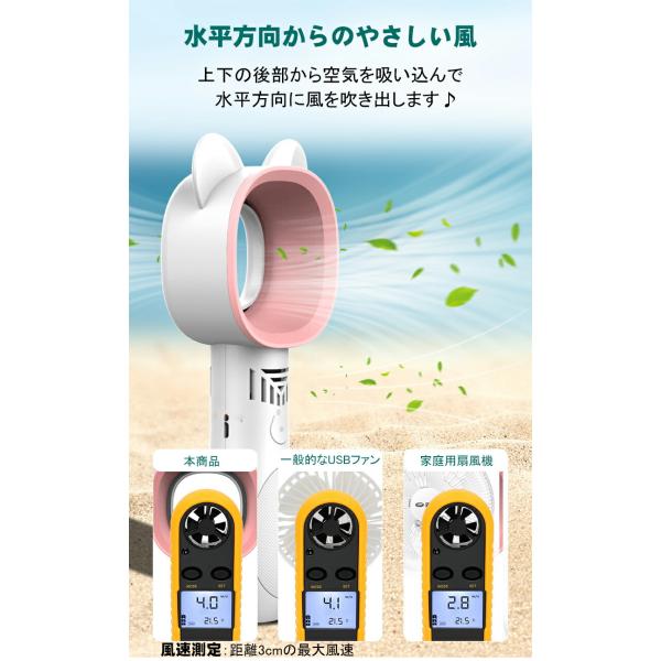 可愛い猫の耳 羽根なし扇風機 猫耳 子供 ハンディファン ミニ扇風機 USB 取り付け ファン 携帯扇風機 持ち運び 小型 安心 ハンディ 3段階調節 手持ち型