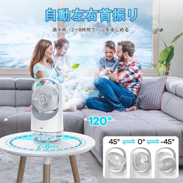 扇風機 冷風扇 冷風機クーラー 卓上扇風機 小型 静音 ミニクーラー ポータブルエアコン 加湿 3段階風量 自動首振り USB充電式 空気清浄 熱中症対策
