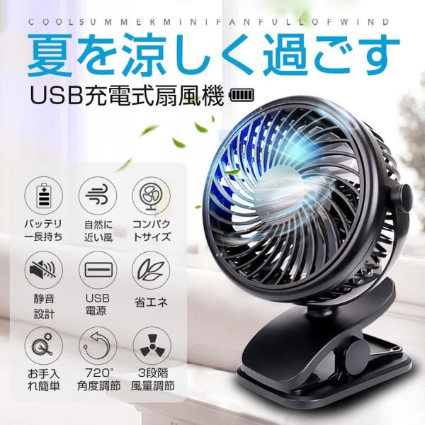 扇風機 クリップ式扇風機 USB式扇風機 卓上扇風機 ミニ扇風機 クリップ 360度回転 風量3段階調節 節電 ベビーカー usb充電式 乾電池対応 携帯 卓上 小型 超静音