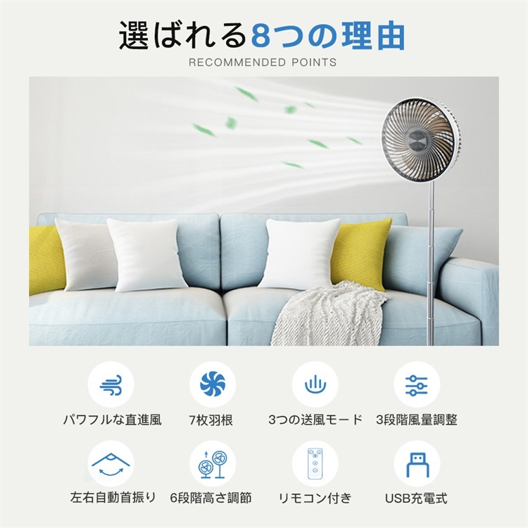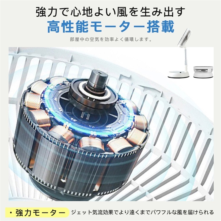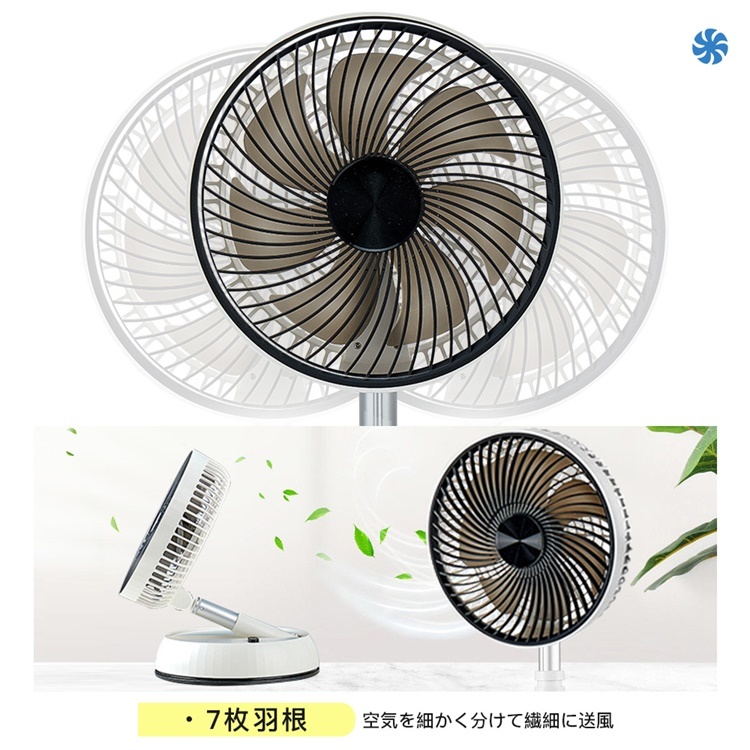 扇風機 USB充電式 7枚羽根 3つの送風モード 6段階高さ調節 折り畳み サーキュレーター 静音 冷風機 90°首振り 省スペース 家庭用 携帯扇風機 熱中症 2026夏