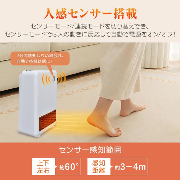 セラミックヒーター 速暖 2025 人感センサー 小型 ヒーター 暖房器具 電気ストーブ ファンヒーター 足元ヒーター 温風 セラミックファンヒーター 脱衣所 暖房