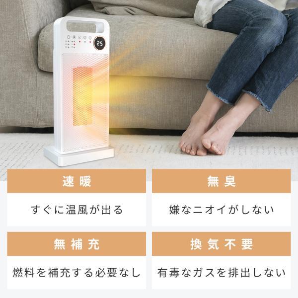 セラミックヒーター2秒速暖 左右80°首振り 温度調節可能 電気過熱保護 転倒OFF 節電 省エネ リモコン付き 即暖 ファンヒーター タイマー機能 無臭 リモコン付き