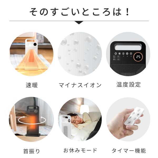 セラミックヒーター 2秒速暖 首振り 電気ヒーター 3段階温度調節可能 電気過熱保護 転倒OFF 過熱と転倒保護 タッチ操作 暖房器具 リモコン付き 操作簡単