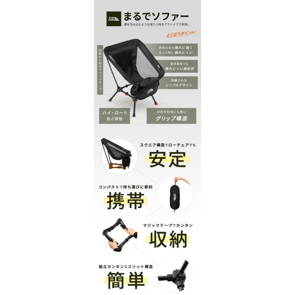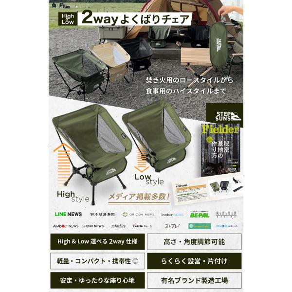 アウトドア キャンプ チェア 折りたたみ椅子 高さ調整 角度調節 STEPSUNS ハイ & ロー 高さ 切替 2WAY 持ち運び コンパクト 収納