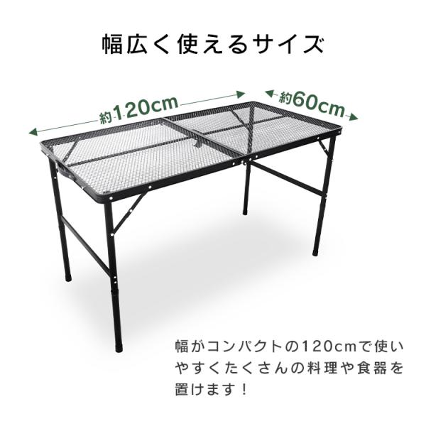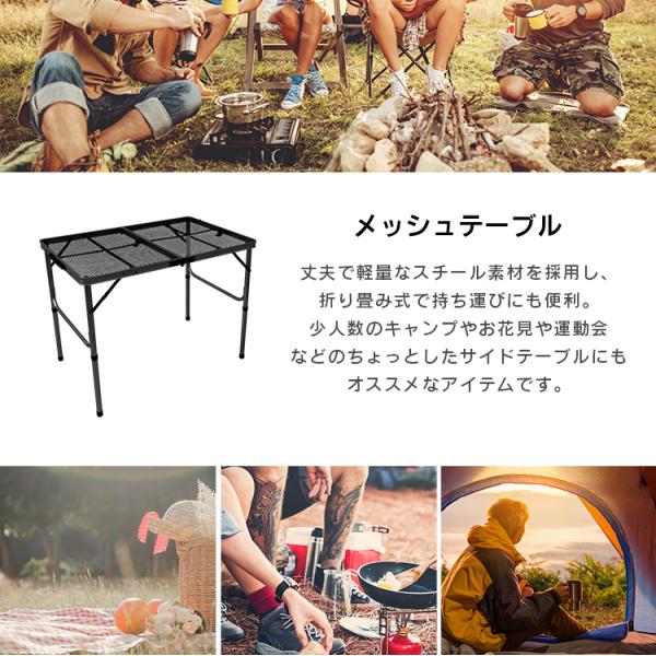 アウトドアテーブル メッシュテーブル スチール キャンプテーブル 折りたたみ 高さ調整 軽量 コンパクト レジャーテーブル アウトドア メッシュ