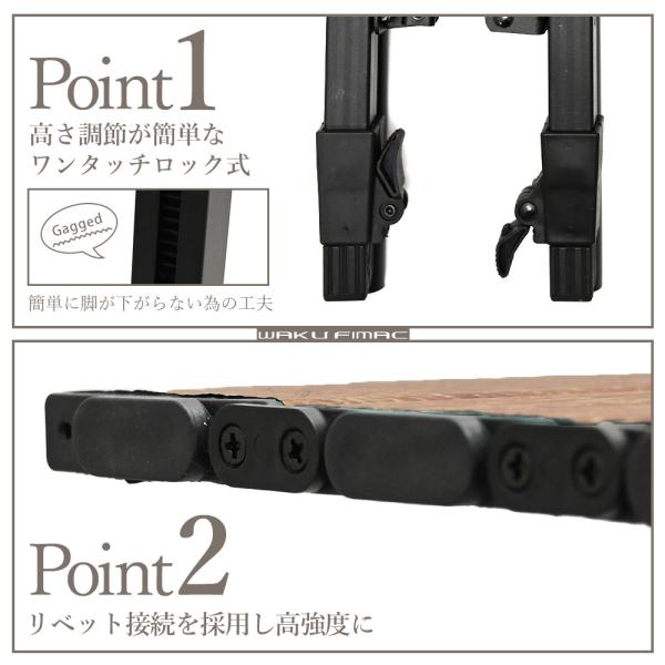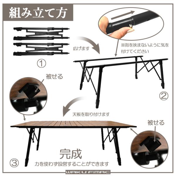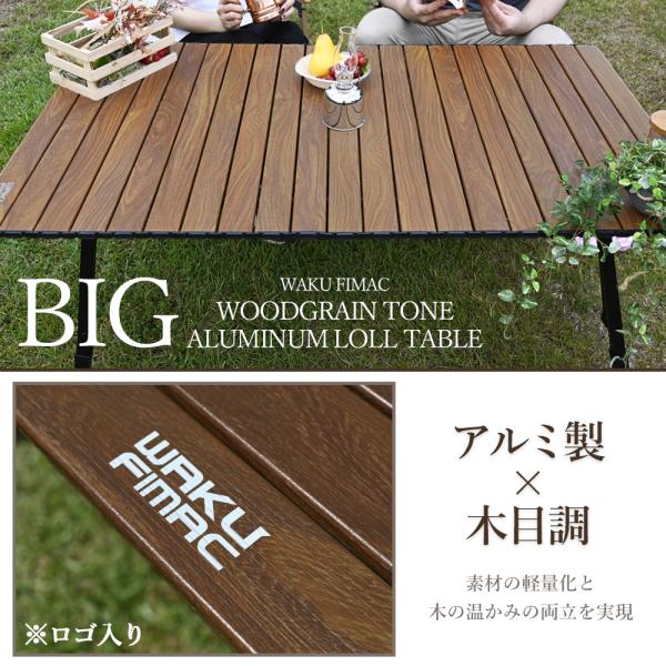 waku fimac 120×70 アウトドアテーブル キャンプテーブル ウッド 調 テーブル ロール テーブル キャンプ アウトドア 軽量 木目