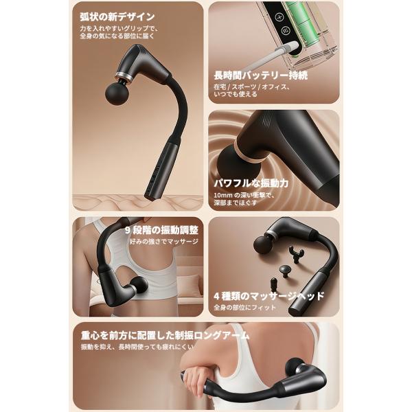 筋膜リリース 背中マッサージ マッサージガン 軽量 マッサージ機 全身 マッサージ器 小型 4種類ヘッド 9段階強度 首 肩 背中 全身ケア