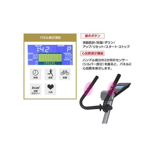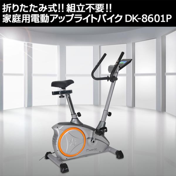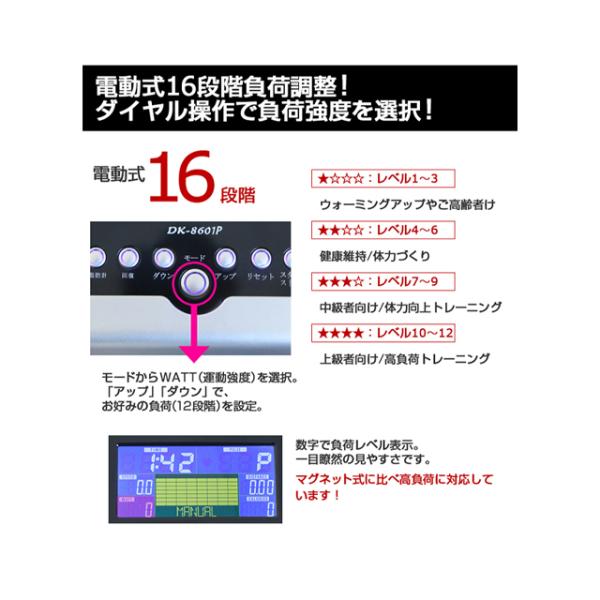 フィットネスバイク 家庭用 静音 電動16段階 連続使用時間 60分 組立不要 マグネット式負荷 アップライトバイク ダイコー DK-8601P