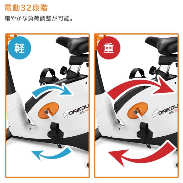 フィットネスバイク 家庭用 静音 電動 32段階調整 連続使用時間 60分 マグネット式負荷 アップライトバイク ダイコー DK-8920