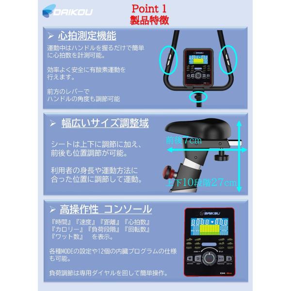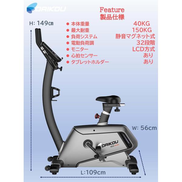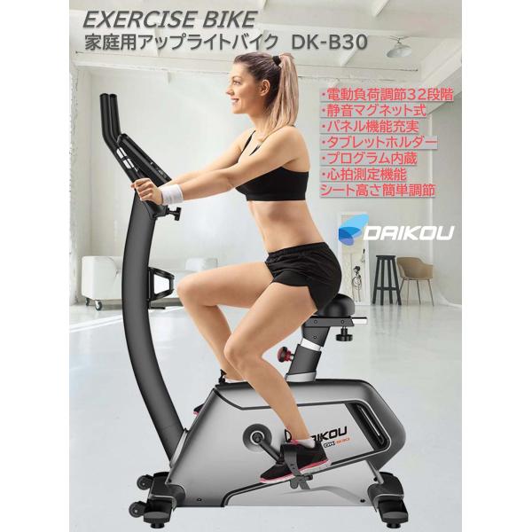 【予約 4月15再入荷予定】フィットネスバイク 家庭用 静音 電動 32段階調整 連続使用 60分 マグネット式負荷 体重制限150kg アップライトバイク ダイコー DK-B30